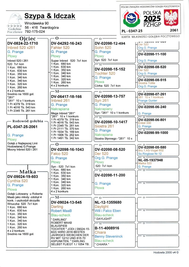 Profesjonalna hodowla z wieloletnim doświadczeniem, posiadająca w swoim stadzie materiał najwyższej światowej klasy. Więcej informacji w załączonych materiałach oraz pod nr tel. 792-175-024 Oferowany gołąb to prawdopodobnie SAMCZYK. Płeć pisana orientacyjnie