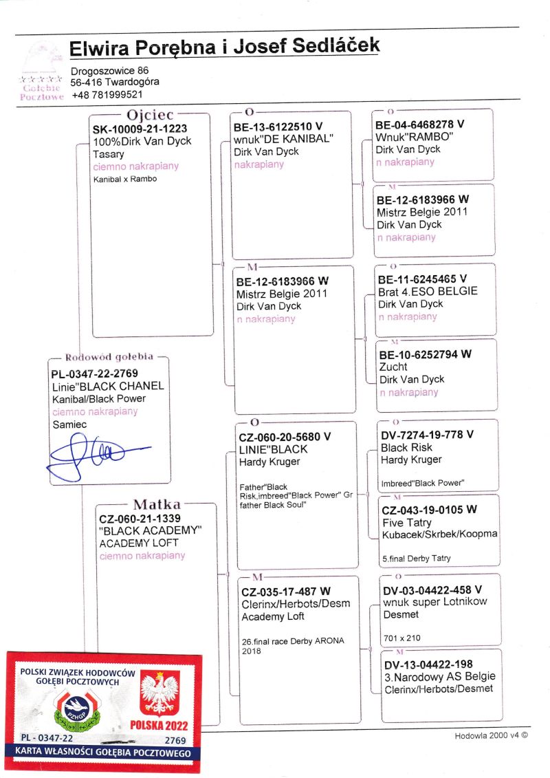 Oryginalny gołąb z hodowli Porębna i Sedlacek. Szczegóły pochodzenia w rodowodzie. Więcej informacji pod nr tel.: 605-248-575