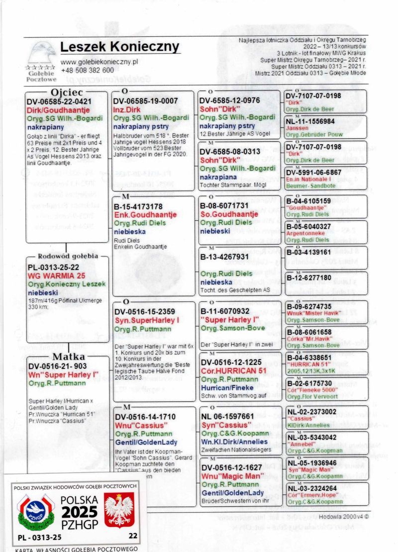 Płeć: młody gołąb Hodowca - rasa: Konieczny Leszek Zakończenie: 25.10.2025 godz. 19:06