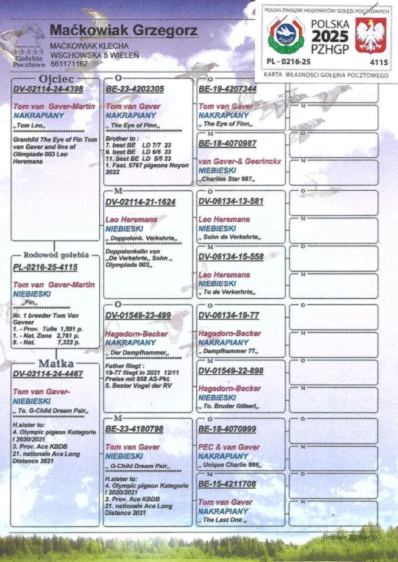 Płeć: młody gołąb Hodowca - rasa: G.M Zakończenie: 25.10.2025 godz. 18:18