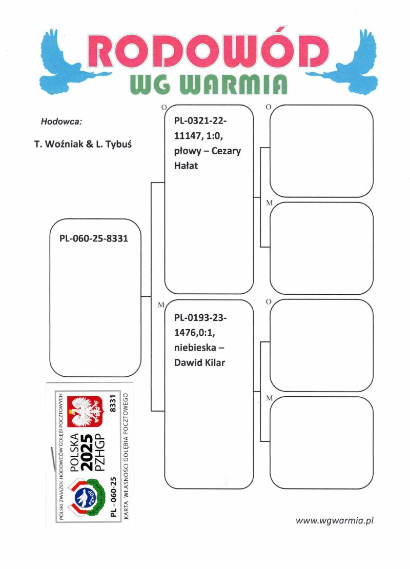 Uczestnik WG Warmia 2025, sezon VIII. Loty z kierunku północny wschód, Litwa. 124 z Finału, 282 AS, 85 z Extra Finału. Szczegóły pochodzenia w rodowodzie.