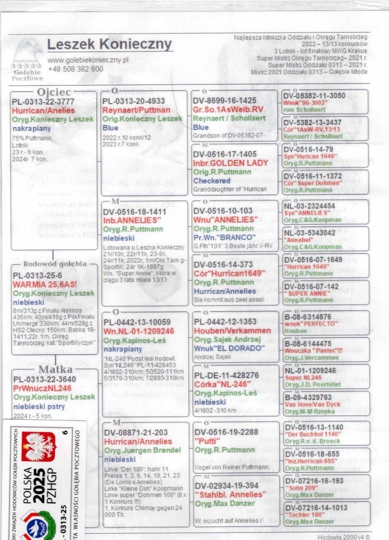 Płeć: młody gołąb Hodowca - rasa: Konieczny Leszek Zakończenie: 25.10.2025 godz. 20:54