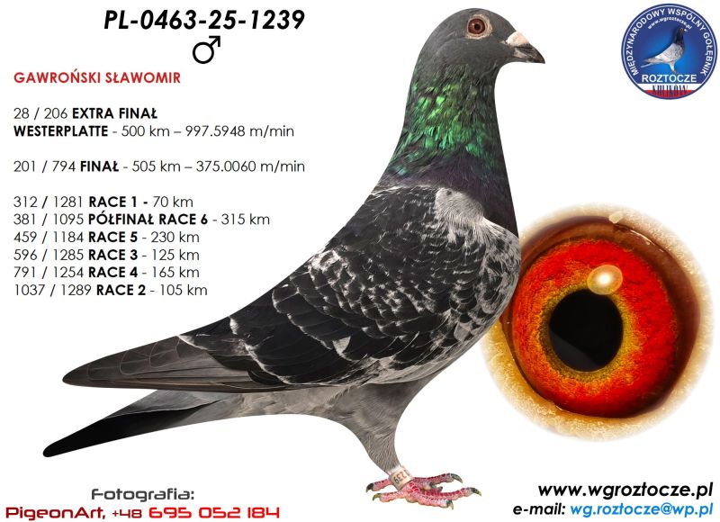 PL-0463-25-1239 WG ROZTOCZE FINAŁ 201poz.505km EXTRA FINAŁ 28 poz.500km 2x500km
