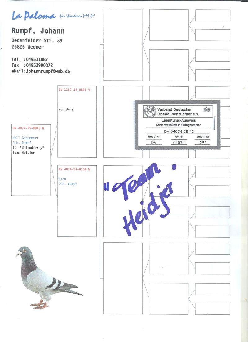 Płeć: młody gołąb Hodowca - rasa: WG UPLAND DERBY WILLINGEN Zakończenie: 25.10.2025 godz. 18:48