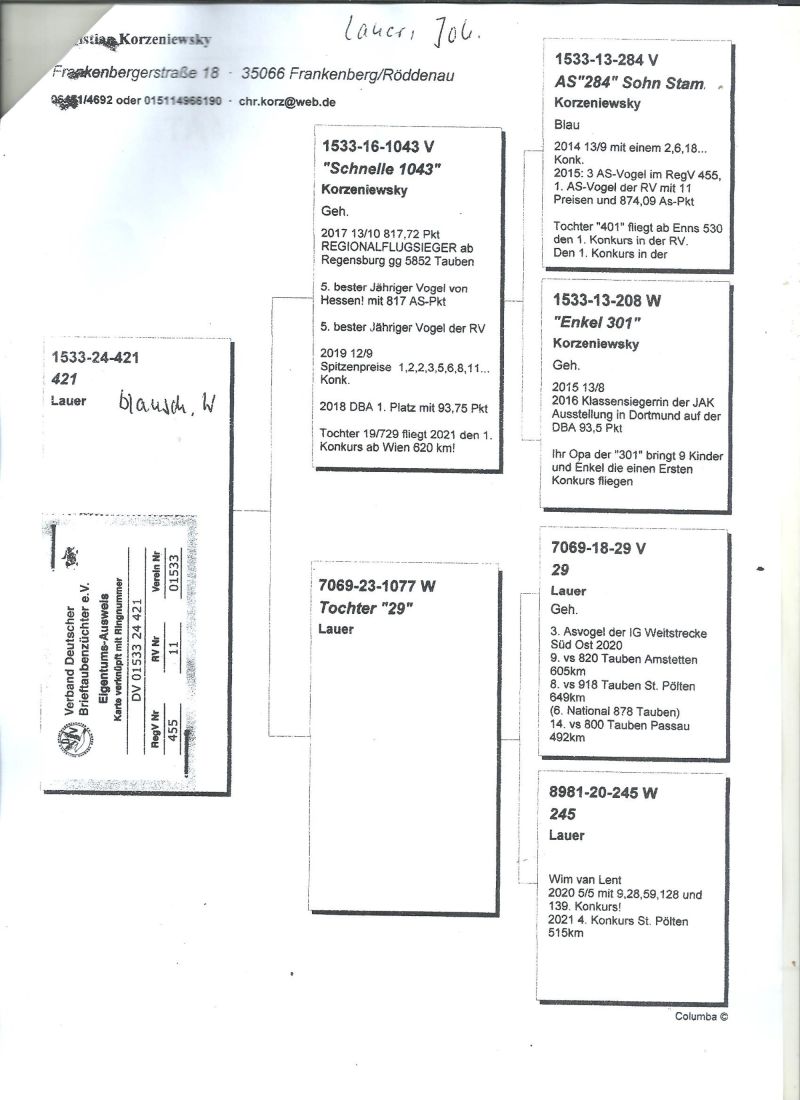 Płeć: młody gołąb Hodowca - rasa: WG UPLAND DERBY WILLINGEN Zakończenie: 25.10.2025 godz. 18:57