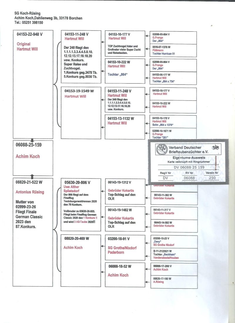 Gołębie ze wspólnego gołębnika UPLAND DERBY Willingen,szczegóły pochodzenia w rodowodzie.Gołębie brały udział w 11 lotach treningowych , 4 konkursowych i 5 lot Finałowy 344km,Więcej informacji pod nr tel.: 603 312 976, Wyniki dostępne klikając w link ,transport gołębi po wcześniejszej wpłacie pieniążków na konto .Gołębie będą rozwożone po 07.11.2025 ,koszt transportu 1-3szt-120zł,3-6szt-140zł płatne kurierowi.
