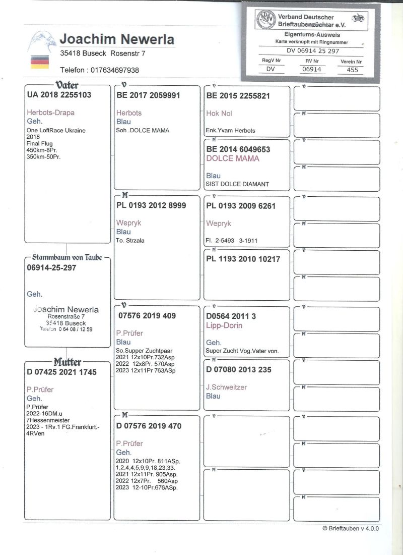 Płeć: młody gołąb Hodowca - rasa: WG UPLAND DERBY WILLINGEN Zakończenie: 27.10.2025 godz. 19:06