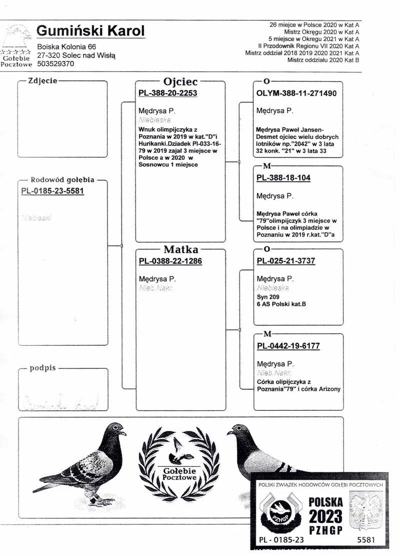 więcej info.w rodowodzie i na stronie Benzing Live.oneloftrace.live/lofts/260?season=2458&tab=flights