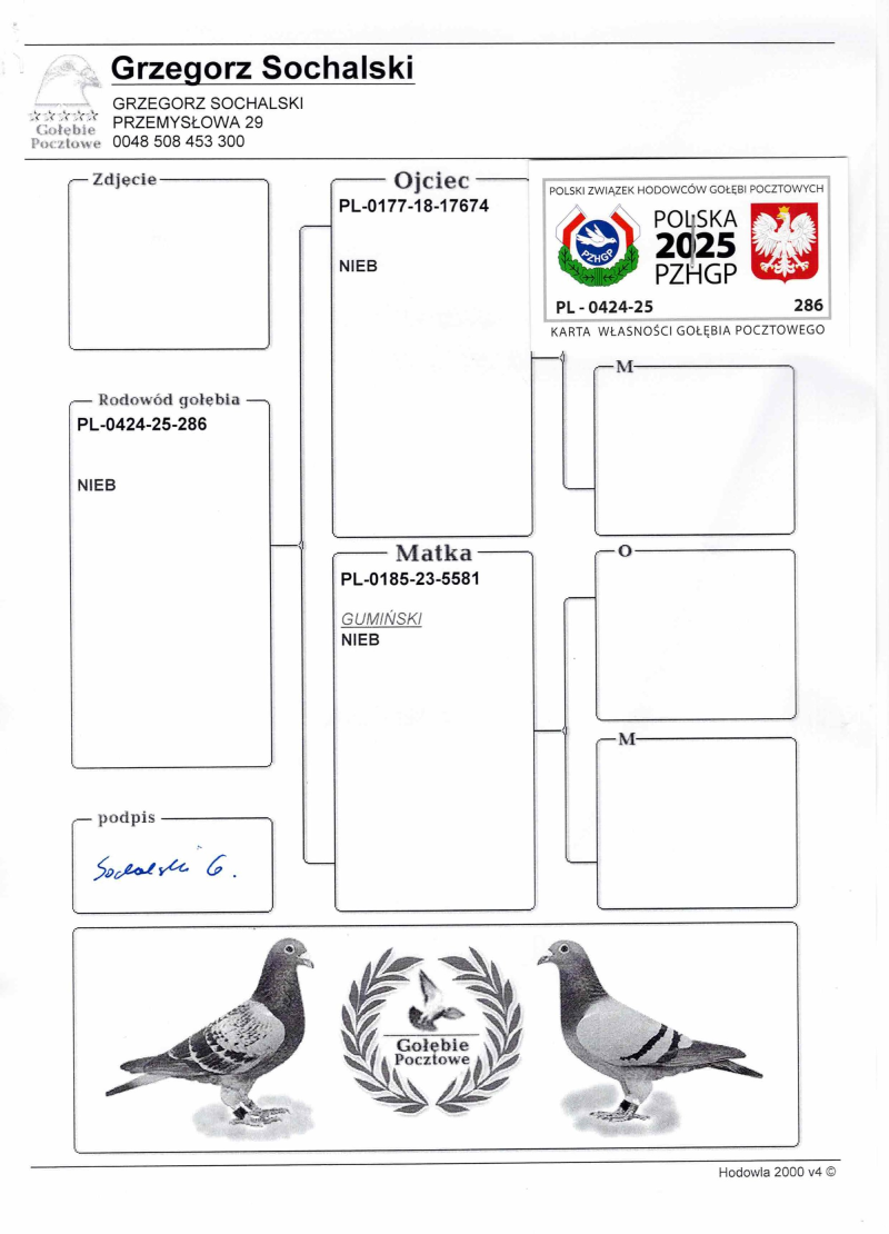 Płeć: samiec Hodowca - rasa: Oryg.SOCHALSKI GRZEGORZ Zakończenie: 25.10.2025 godz. 21:15