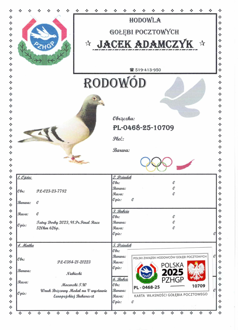 PL-0227-25-3324 WG ROZTOCZE FINAŁ 54poz. 505km 58 AS 3 Drużyna