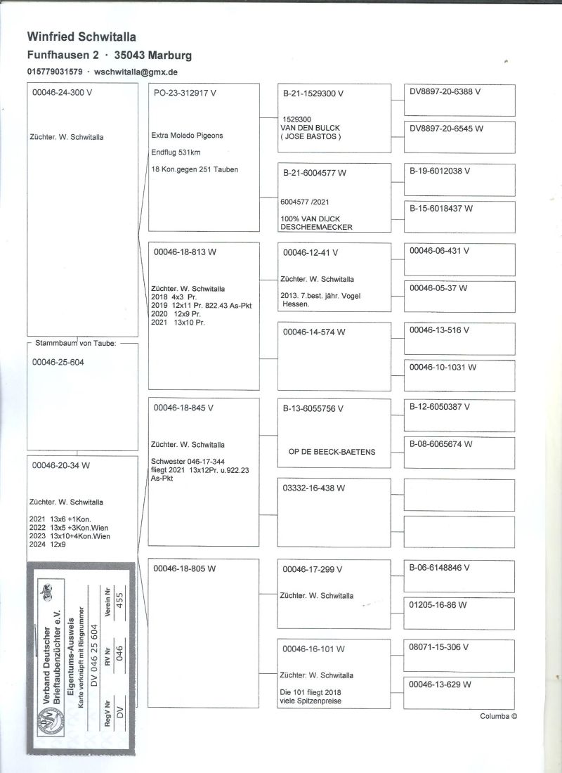 Gołębie ze wspólnego gołębnika UPLAND DERBY Willingen,szczegóły pochodzenia w rodowodzie.Gołębie brały udział w 11 lotach treningowych , 4 konkursowych i 5 lot Finałowy 344km,Więcej informacji pod nr tel.: 603 312 976, Wyniki dostępne klikając w link ,transport gołębi po wcześniejszej wpłacie pieniążków na konto .Gołębie będą rozwożone po 07.11.2025 ,koszt transportu 1-3szt-120zł,3-6szt-140zł płatne kurierowi.