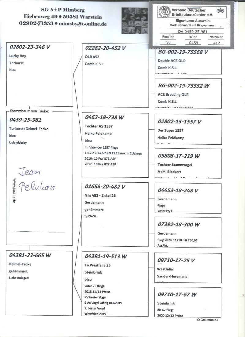 Gołębie ze wspólnego gołębnika UPLAND DERBY Willingen,szczegóły pochodzenia w rodowodzie.Gołębie brały udział w 11 lotach treningowych , 4 konkursowych i 5 lot Finałowy 344km,Więcej informacji pod nr tel.: 603 312 976, Wyniki dostępne klikając w link ,transport gołębi po wcześniejszej wpłacie pieniążków na konto .Gołębie będą rozwożone po 07.11.2025 ,koszt transportu 1-3szt-120zł,3-6szt-140zł płatne kurierowi.
