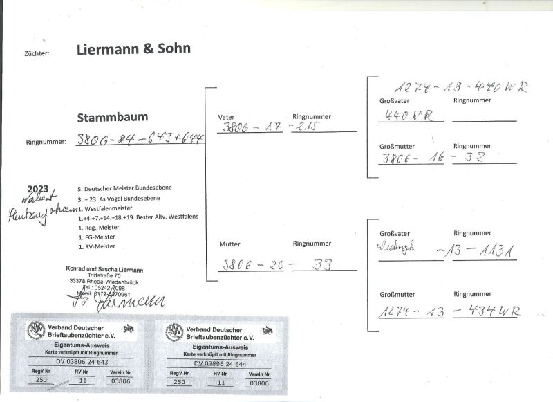 Gołębie ze wspólnego gołębnika UPLAND DERBY Willingen,szczegóły pochodzenia w rodowodzie.Gołębie brały udział w 11 lotach treningowych , 4 konkursowych i 5 lot Finałowy 344km,Więcej informacji pod nr tel.: 603 312 976, Wyniki dostępne klikając w link ,transport gołębi po wcześniejszej wpłacie pieniążków na konto .Gołębie będą rozwożone po 07.11.2025 ,koszt transportu 1-3szt-120zł,3-6szt-140zł płatne kurierowi.