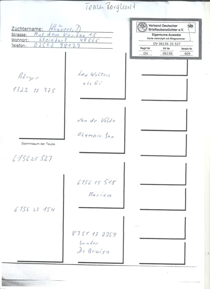Gołębie ze wspólnego gołębnika UPLAND DERBY Willingen,szczegóły pochodzenia w rodowodzie.Gołębie brały udział w 11 lotach treningowych , 4 konkursowych i 5 lot Finałowy 344km,Więcej informacji pod nr tel.: 603 312 976, Wyniki dostępne klikając w link ,transport gołębi po wcześniejszej wpłacie pieniążków na konto .Gołębie będą rozwożone po 07.11.2025 ,koszt transportu 1-3szt-120zł,3-6szt-140zł płatne kurierowi.