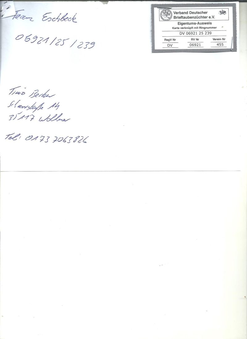 Płeć: młody gołąb Hodowca - rasa: WG UPLAND DERBY WILLINGEN Zakończenie: 28.10.2025 godz. 19:27