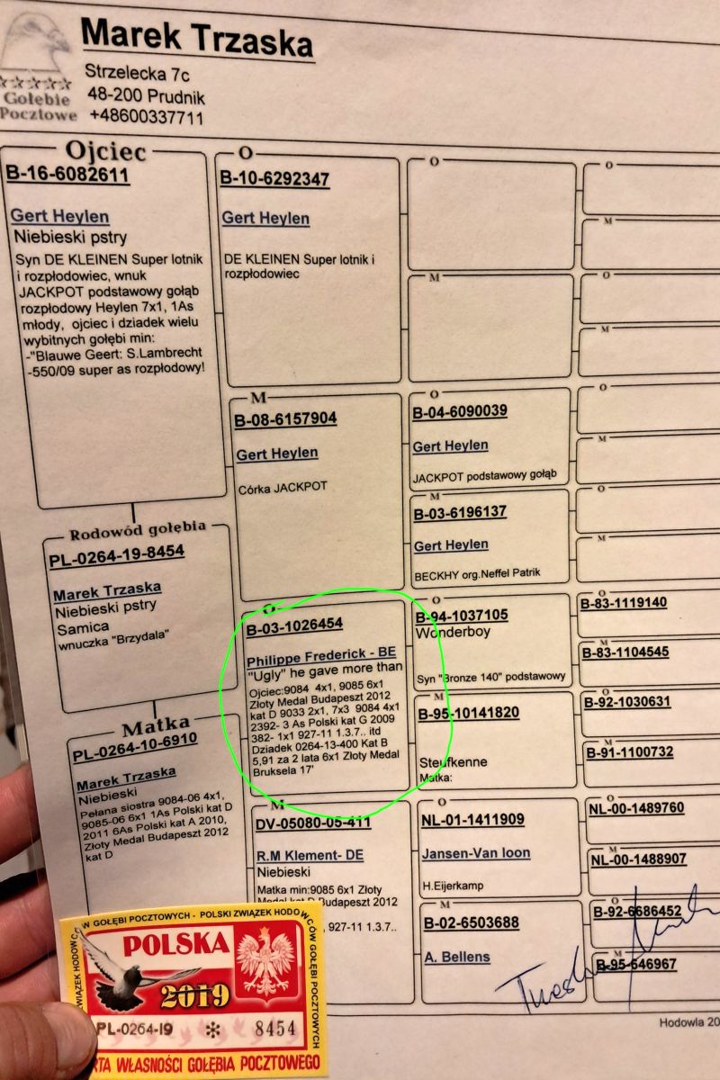 Oryginalny gołąb z hodowli Marka Trzaski. Szczegóły pochodzenia w rodowodzie. Więcej informacji pod nr tel.: 669-823-001 **możliwość wysyłki kurierem