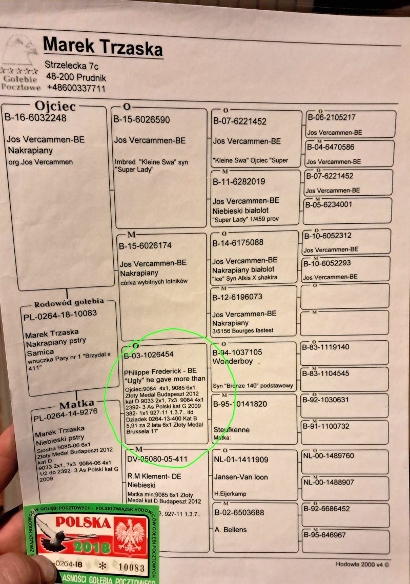 Oryginalny gołąb z hodowli Marka Trzaski. Szczegóły pochodzenia w rodowodzie. Więcej informacji pod nr tel.: 669-823-001 **możliwość wysyłki kurierem
