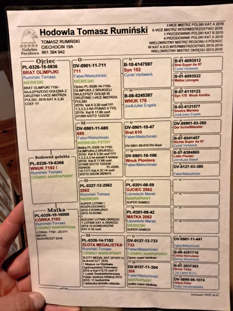 Oryginalny gołąb z hodowli Tomasza Rumińskiego. Szczegóły pochodzenia w rodowodzie. Więcej informacji pod nr tel.: 669-823-001 **możliwość wysyłki kurierem