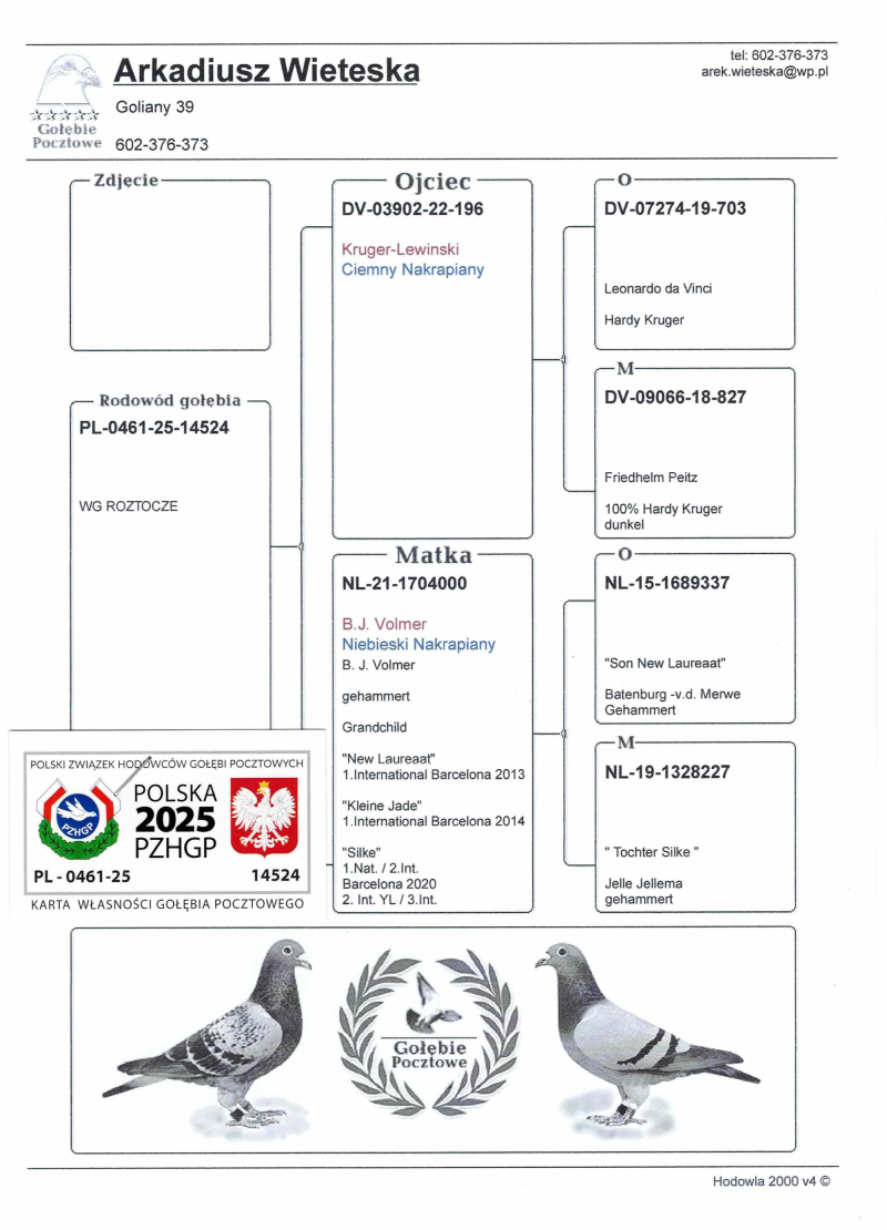 więcej info.w rodowodzie i na stronie Benzing Live. oneloftrace.live/lofts/260?season=2458&tab=flights