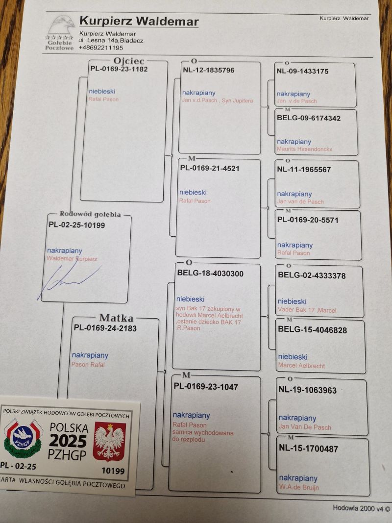 Oryginalny gołąb z hodowli Waldemar Kurpierz. Szczegóły pochodzenia w rodowodzie. Więcej informacji pod nr tel.: 692211195