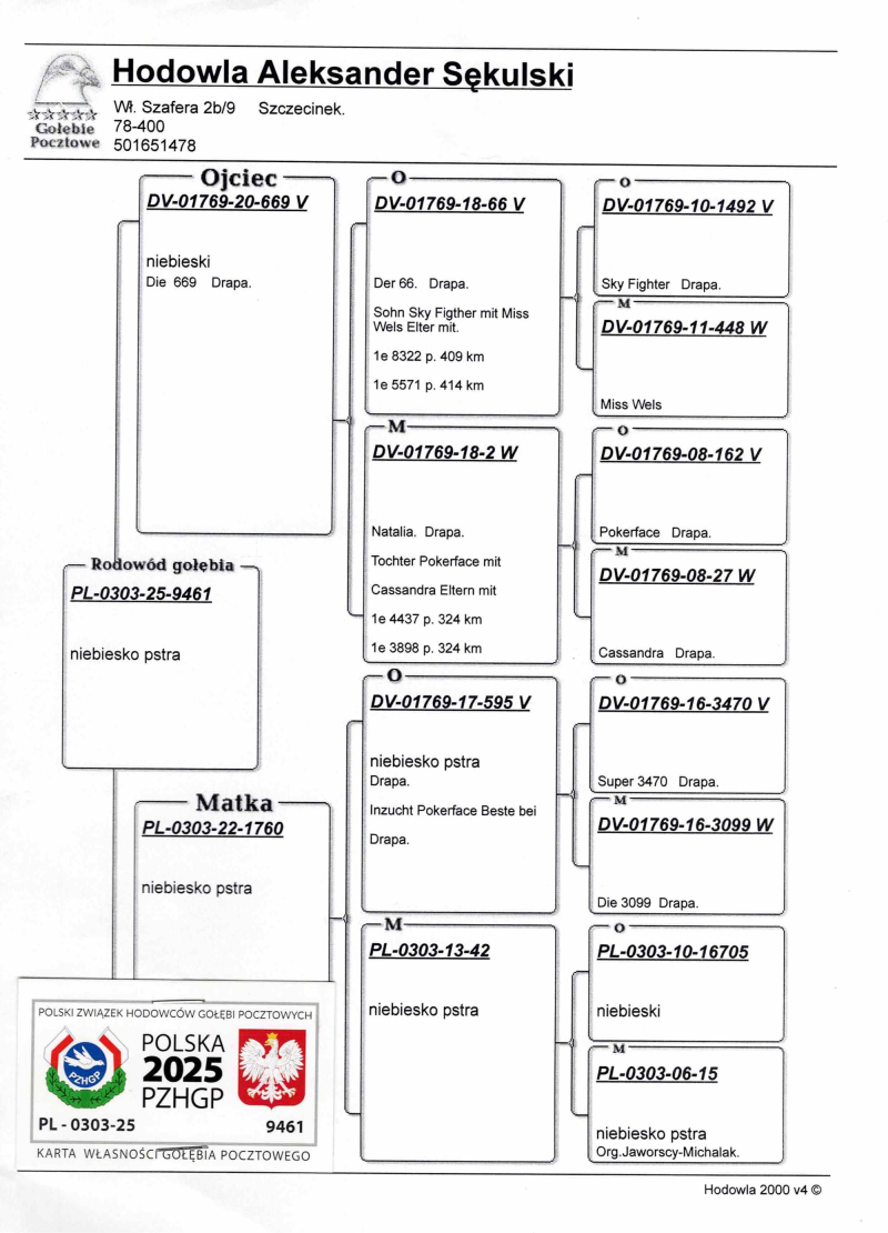 Płeć: samiec Hodowca - rasa: Oryg.WIECH RACING TEAM Wiechowicz-Sękulski Zakończenie: 26.10.2025 godz. 19:42
