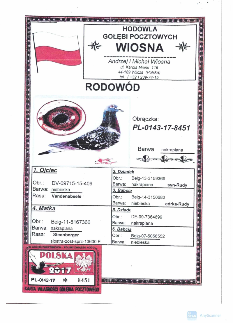Płeć: samica Hodowca - rasa: Oryg.PAPROCKI JANUSZ Zakończenie: 26.10.2025 godz. 19:36