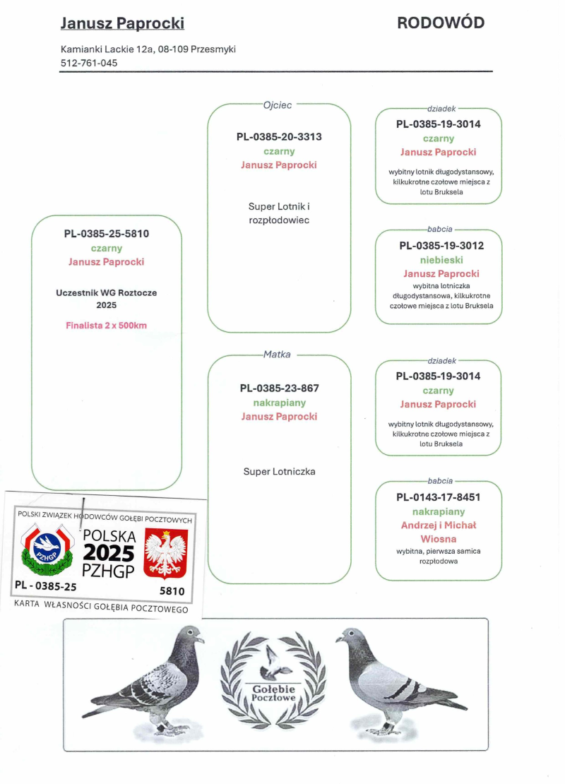 PL-0385-25-5810 WG ROZTOCZE FINAŁ 109poz505km Extra Finał 35poz. 500km 35AS 22 Drużyna 2x500km