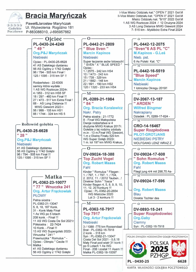 PL-0430-25-6628 WG ROZTOCZE FINAŁ 96poz.505km 56AS 41AS Dalekodystansowy