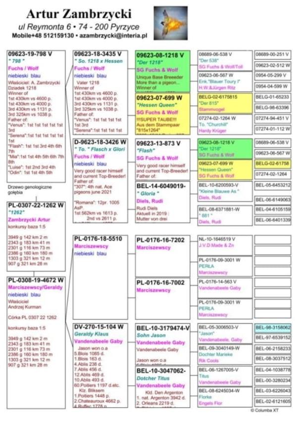 Oryginalny gołąb z hodowli Artura Zambrzyckiego. Szczegóły pochodzenia w rodowodzie. Więcej informacji pod nr tel.: 603 213 203 **wysyłka na koszt kupującego lub odbiór osobisty