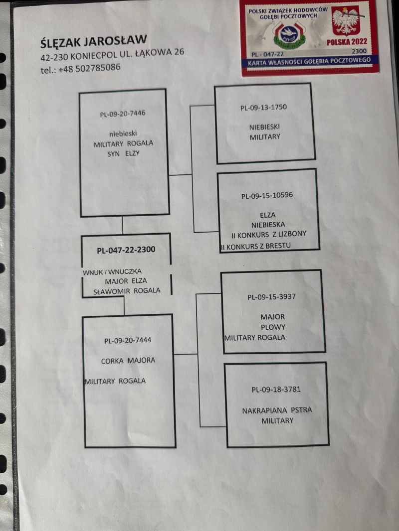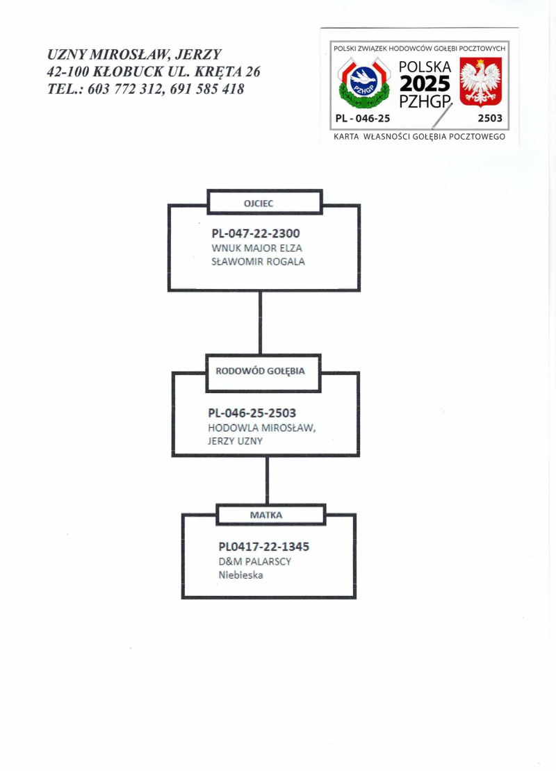 PL-046-25-2503 WG ROZTOCZE FINAŁ 134poz. 505km Extra Finał 72poz. 87AS 18 Drużyna 2x500kmm