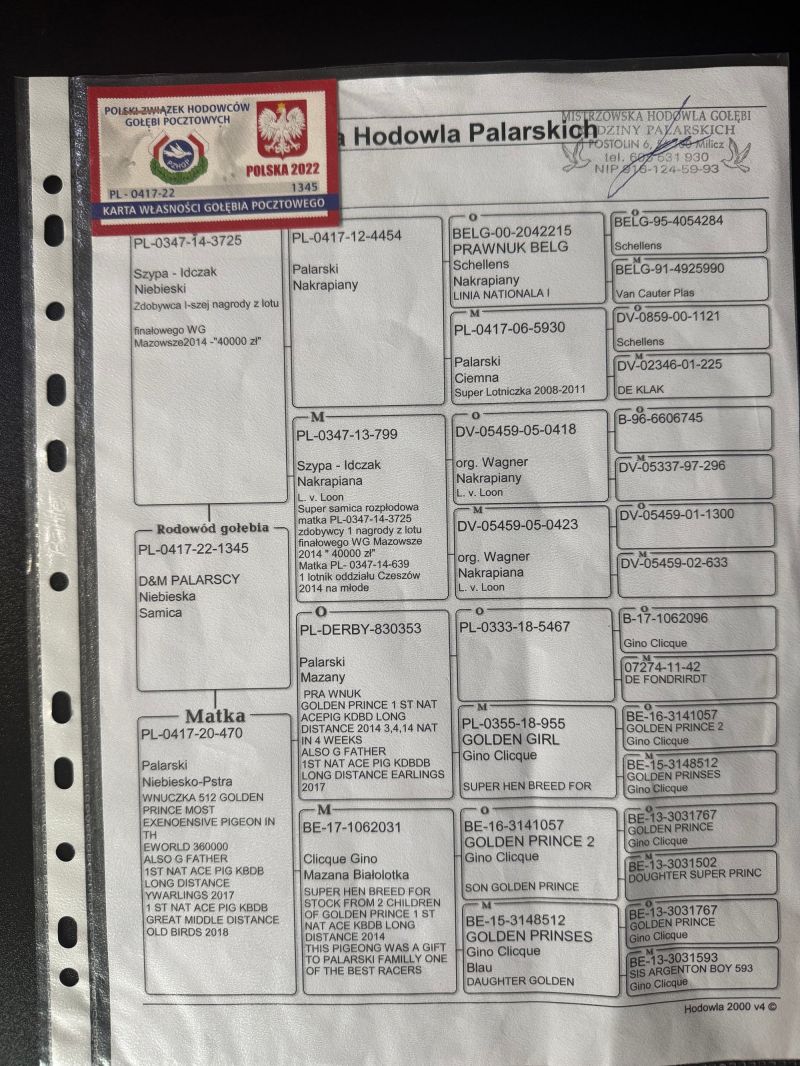 więcej info.w rodowodzie i na stronie Benzing Live. oneloftrace.live/lofts/260?season=2458&tab=flights