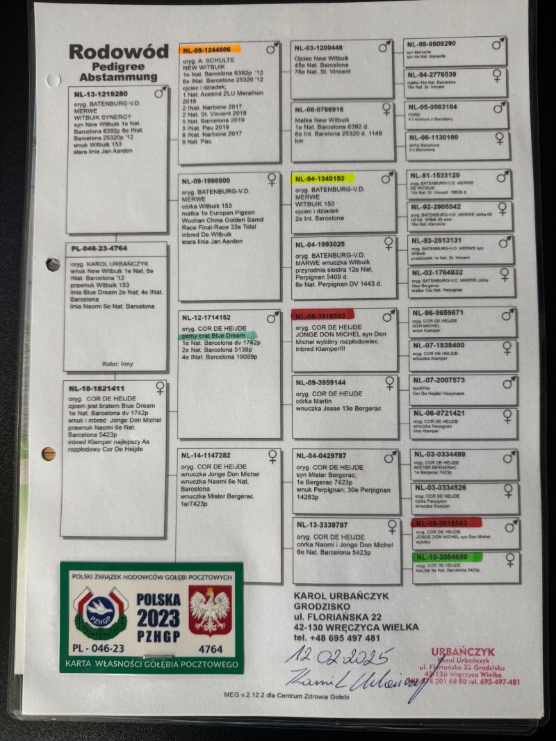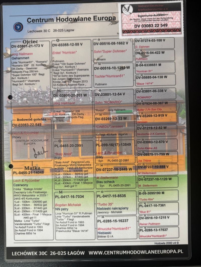 więcej info.w rodowodzie i na stronie Benzing Live. oneloftrace.live/lofts/260?season=2458&tab=flights