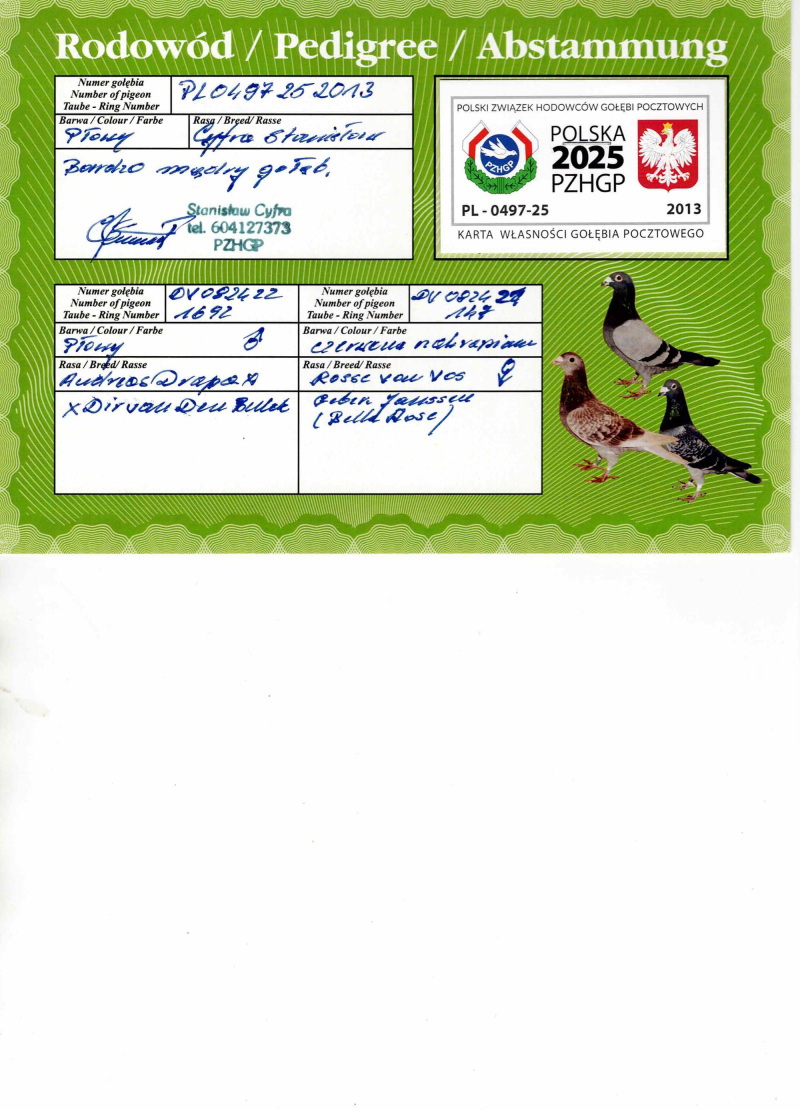 więcej info.w rodowodzie i na stronie Benzing Live. oneloftrace.live/lofts/260?season=2458&tab=flights
