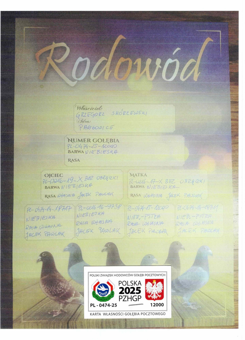 Płeć: samiec Hodowca - rasa: Oryg.SKÓRZEWSKI-PAWLAK Zakończenie: 27.10.2025 godz. 20:00