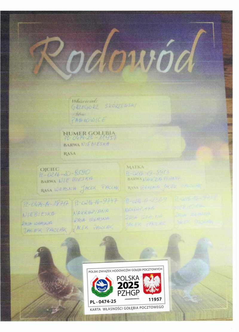 Płeć: samiec Hodowca - rasa: Oryg.SKÓREWSKI-PAWLAK Zakończenie: 27.10.2025 godz. 20:03