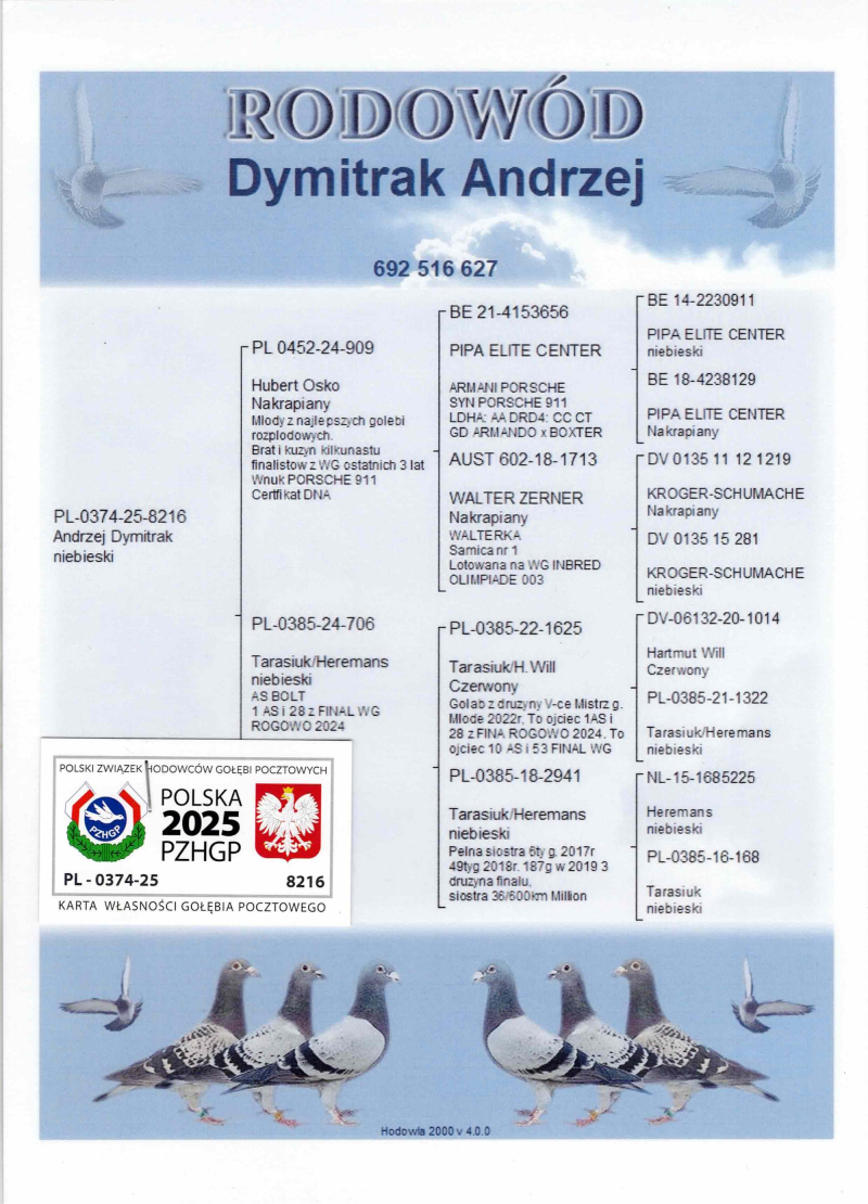 więcej info.w rodowodzie i na stronie Benzing Live.oneloftrace.live/lofts/260?season=2458&tab=flights