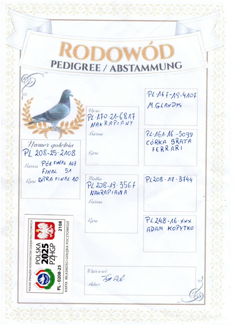 Płeć: samiec Hodowca - rasa: Oryg.TATYS PIOTR Zakończenie: 27.10.2025 godz. 20:39