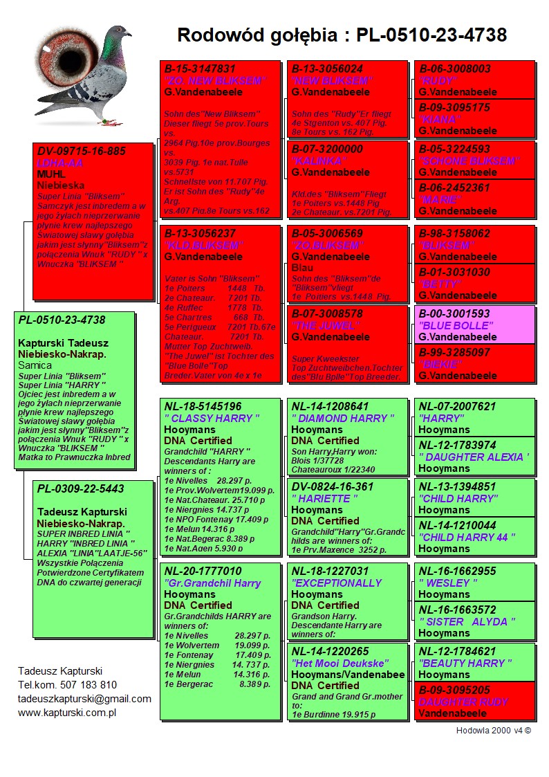 Oryginalny gołąb z hodowli Tadeusza Kapturskiego. Szczegóły pochodzenia w rodowodzie. Więcej informacji pod nr tel. 507183810 **transport kurier 165 zł. **NA ŻYCZENIE CERTYFIKAT DNA