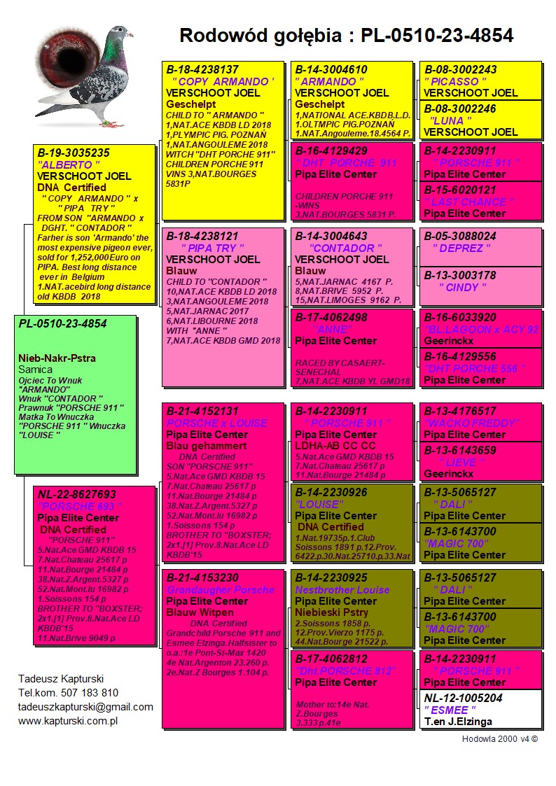 Oryginalny gołąb z hodowli Tadeusza Kapturskiego. Szczegóły pochodzenia w rodowodzie. Więcej informacji pod nr tel. 507183810 **transport kurier 165 zł. **NA ŻYCZENIE CERTYFIKAT DNA