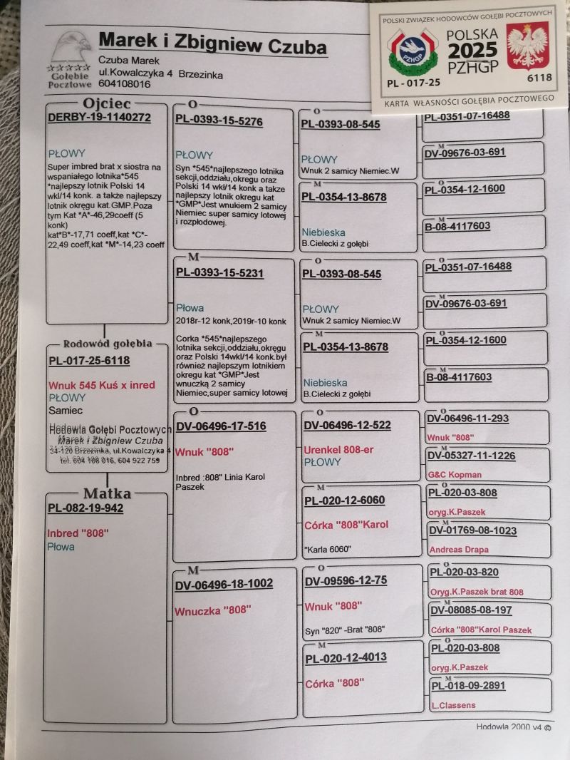 Płeć: samiec Hodowca - rasa: Oryg Czuba Marek Zakończenie: 26.10.2025 godz. 18:42