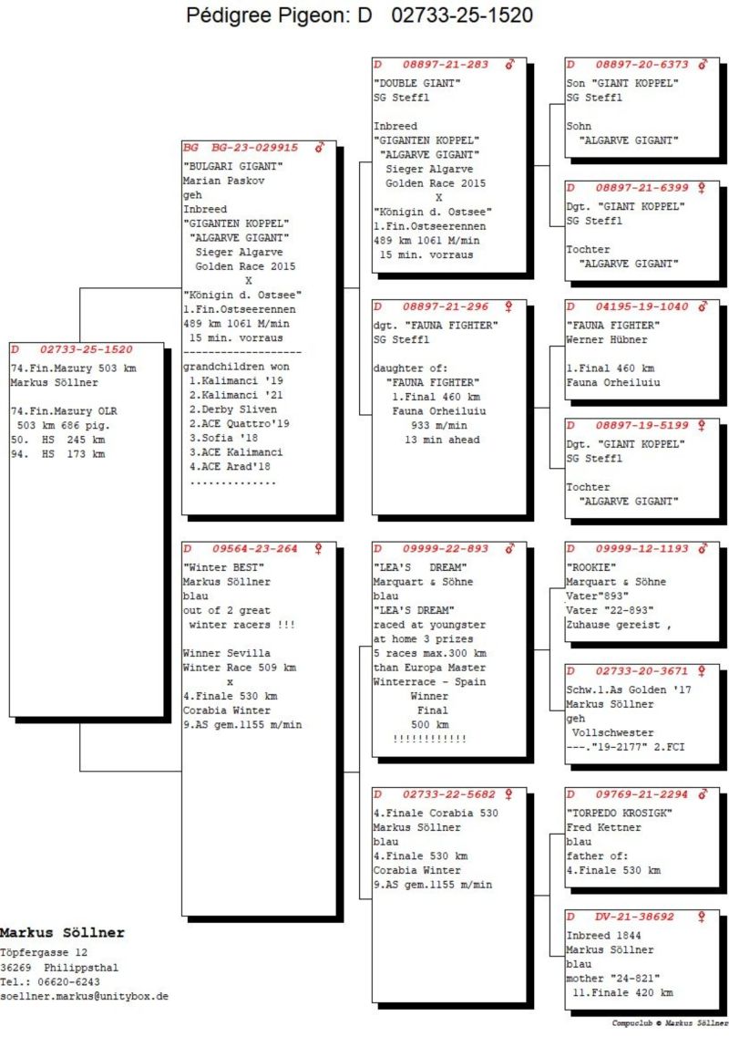 Szczegóły pochodzenia w rodowodzie. Pełne wyniki gołębia w sezonie lotowym na stronie:
