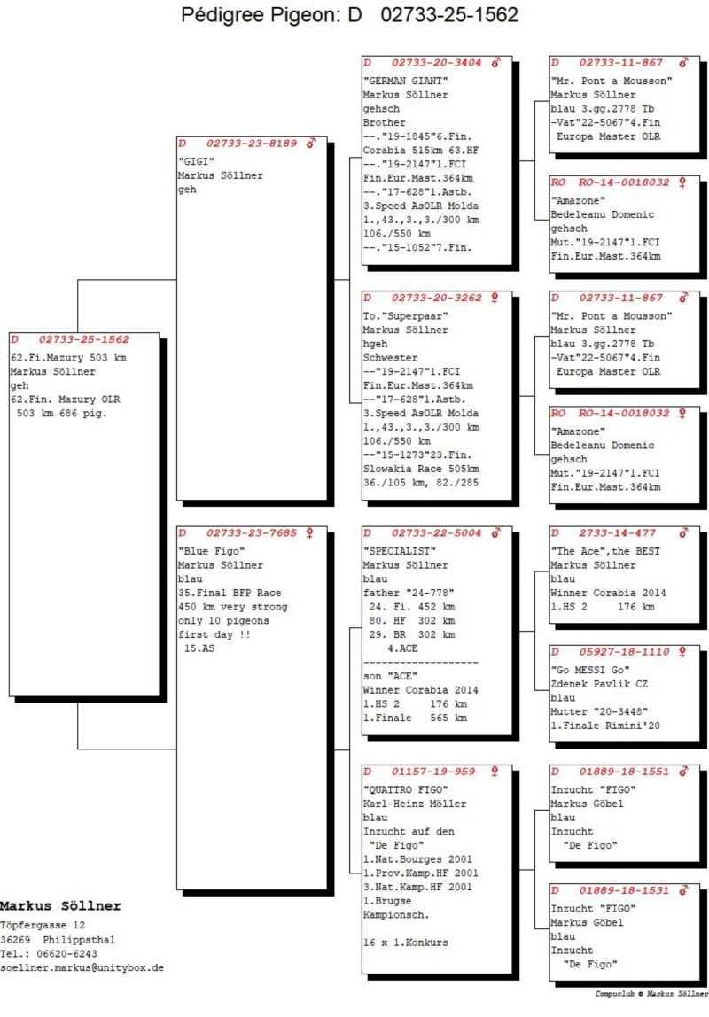 Szczegóły pochodzenia w rodowodzie. Pełne wyniki gołębia w sezonie lotowym na stronie: