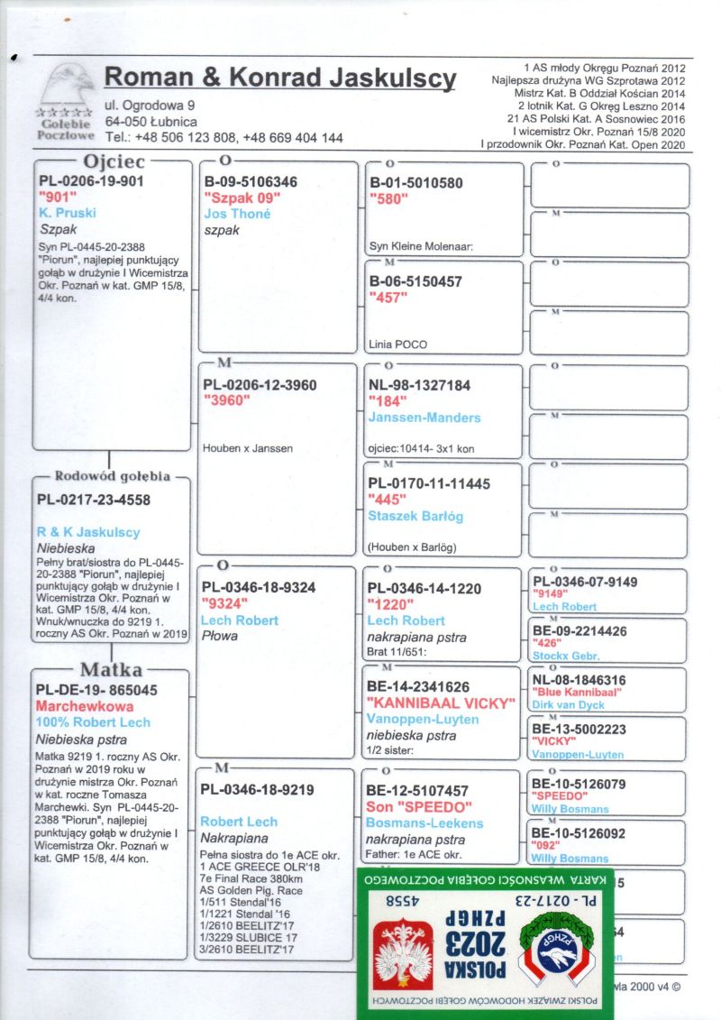Oryginalny gołąb z hodowli R. & K. Jaskulscy, z gołębnika Wojciecha Kołodzieja. Szczegóły pochodzenia w rodowodzie. Więcej informacji pod nr tel.: 608077136 **Wysyłka do 6 sztuk w jednej paczce za 150zł, przedpłata na konto. **przed zalicytowaniem proszę o kontakt z właścicielem w sprawie płci oferowanego gołębia