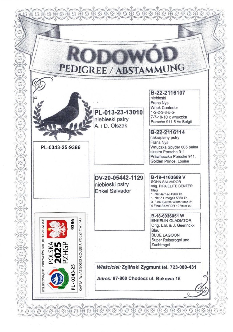 PL-0343-25-9386 - linia gołębi Porsche 911