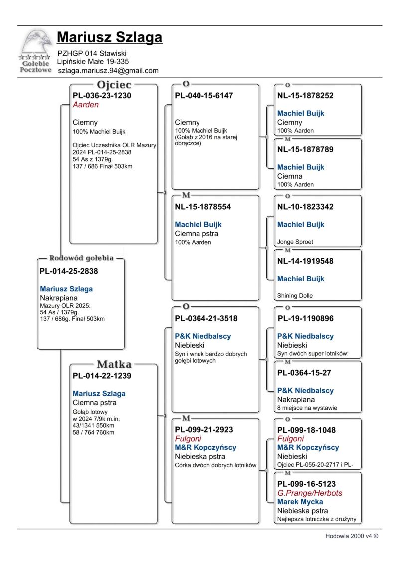 Szczegóły pochodzenia w rodowodzie. Pełne wyniki gołębia w sezonie lotowym na stronie: