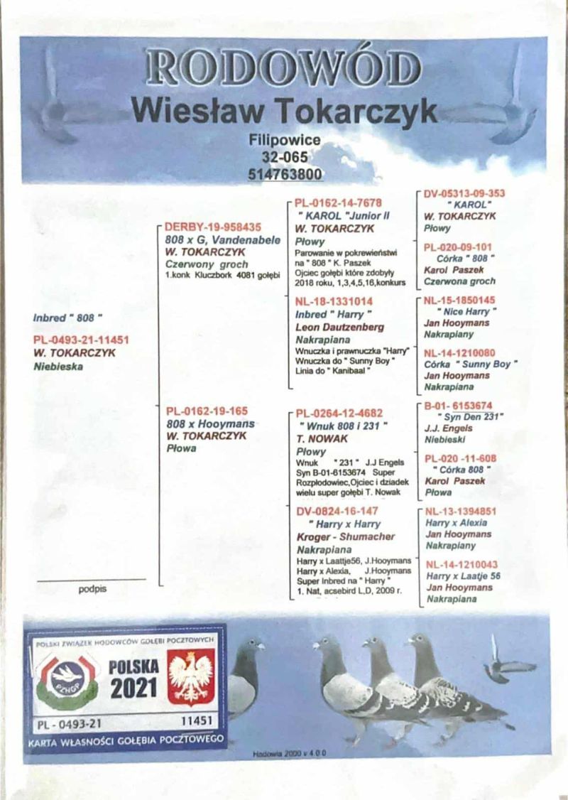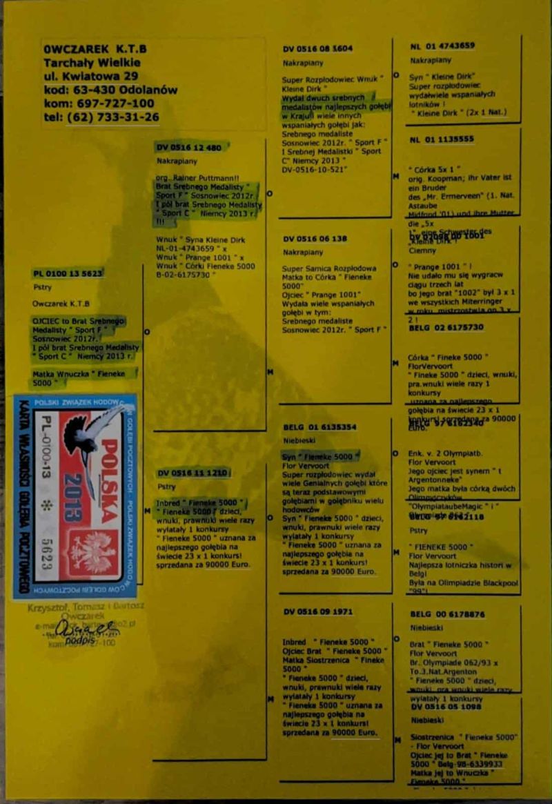 Szczegóły pochodzenia w rodowodzie. Pełne wyniki gołębia w sezonie lotowym na stronie: