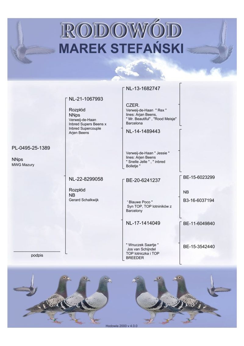 Szczegóły pochodzenia w rodowodzie. Pełne wyniki gołębia w sezonie lotowym na stronie: