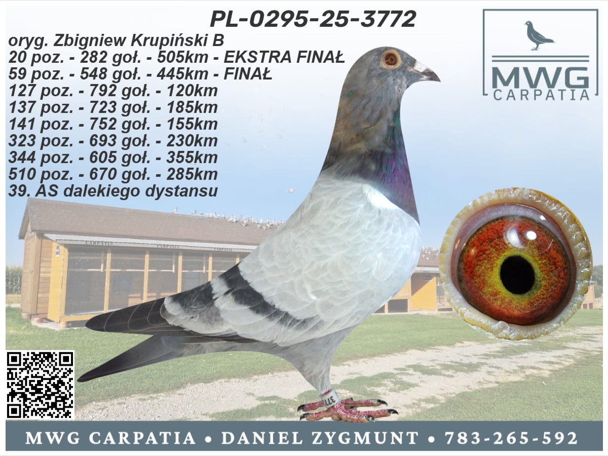 Gołąbek z MWG Carpatia, po całym sezonie lotowym 2025. Drużyna: Zbigniew Krupiński B, 20 z 505 km i 59 z FINAŁU!!. Zorganizowaliśmy 9 lotów treningowych do 92km oraz 7 lotów konkursowych od 105 do 445km, a także ekstra finał z odległości 505km. Ptaki łącznie zrobiły 2153km, a niektóre nawet 2658km. Cały sezon był ciężki i wymagający, więc wszystkie ptaki, które sobie poradziły są warte i cenne uwagi. Więcej informacji pod numerem 783-265-592. Transport 100 zł do 2szt. Do 3-4szt - 150zł. Powyżej 5szt - 200zł. Zapraszamy do udziału w edycji 2026 :)
