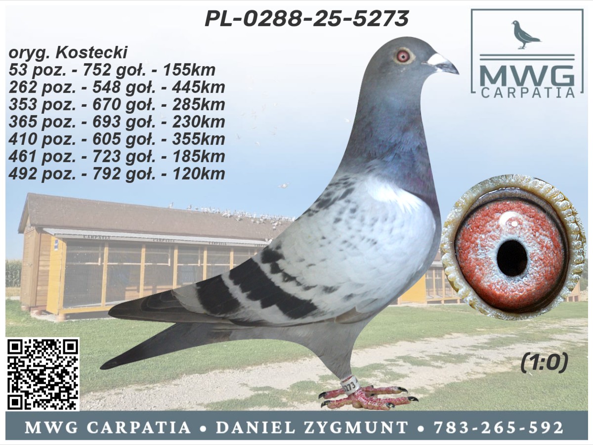 Gołąbek z MWG Carpatia, po całym sezonie lotowym 2025. Drużyna: Kostecki, 53 z 155 km i 262 z FINAŁU!!. Zorganizowaliśmy 9 lotów treningowych do 92km oraz 7 lotów konkursowych od 105 do 445km, a także ekstra finał z odległości 505km. Ptaki łącznie zrobiły 2153km, a niektóre nawet 2658km. Cały sezon był ciężki i wymagający, więc wszystkie ptaki, które sobie poradziły są warte i cenne uwagi. Więcej informacji pod numerem 783-265-592. Transport 100 zł do 2szt. Do 3-4szt - 150zł. Powyżej 5szt - 200zł. Zapraszamy do udziału w edycji 2026 :)