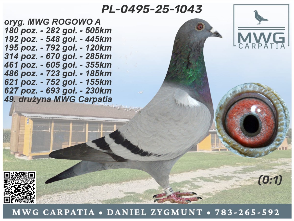 Gołąbek z MWG Carpatia, po całym sezonie lotowym 2025. Drużyna: MWG ROGOWO A, 180 z 505 km i 192 z FINAŁU!!. Zorganizowaliśmy 9 lotów treningowych do 92km oraz 7 lotów konkursowych od 105 do 445km, a także ekstra finał z odległości 505km. Ptaki łącznie zrobiły 2153km, a niektóre nawet 2658km. Cały sezon był ciężki i wymagający, więc wszystkie ptaki, które sobie poradziły są warte i cenne uwagi. Więcej informacji pod numerem 783-265-592. Transport 100 zł do 2szt. Do 3-4szt - 150zł. Powyżej 5szt - 200zł. Zapraszamy do udziału w edycji 2026 :)